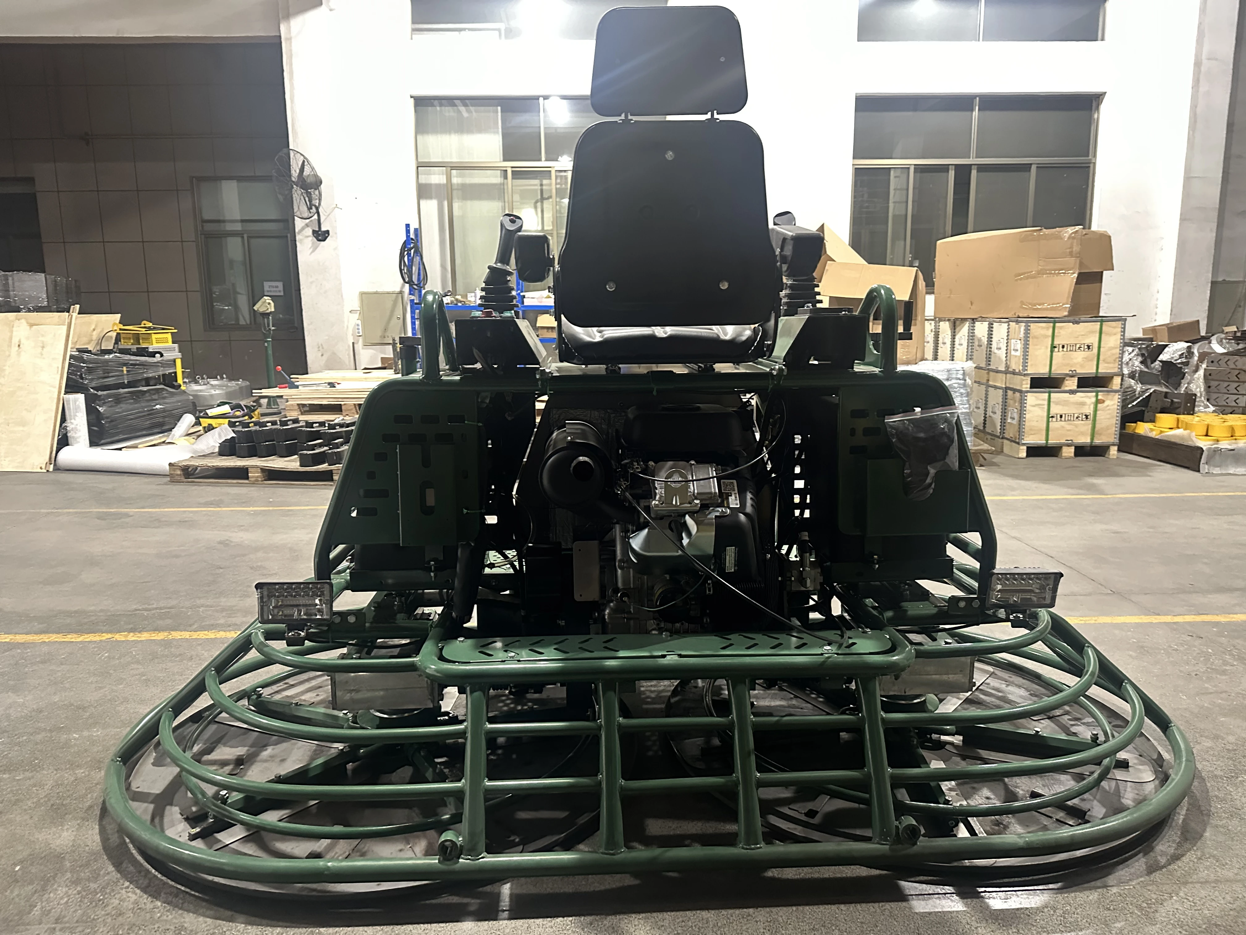 1. Hydraulic steering with higher working efficiency. 2. Reliable clutch and heavy duty gearbox with long service life. 3. Jositck operate handle, easy to operate. 4. 180rpm blade speed. 5. 35Hp B&S gasoline engine with EPA approved for USA and Canada market. 6. Equipped with battery switch and pressure meter. 7. Top quality trowel blade and trowel pans.