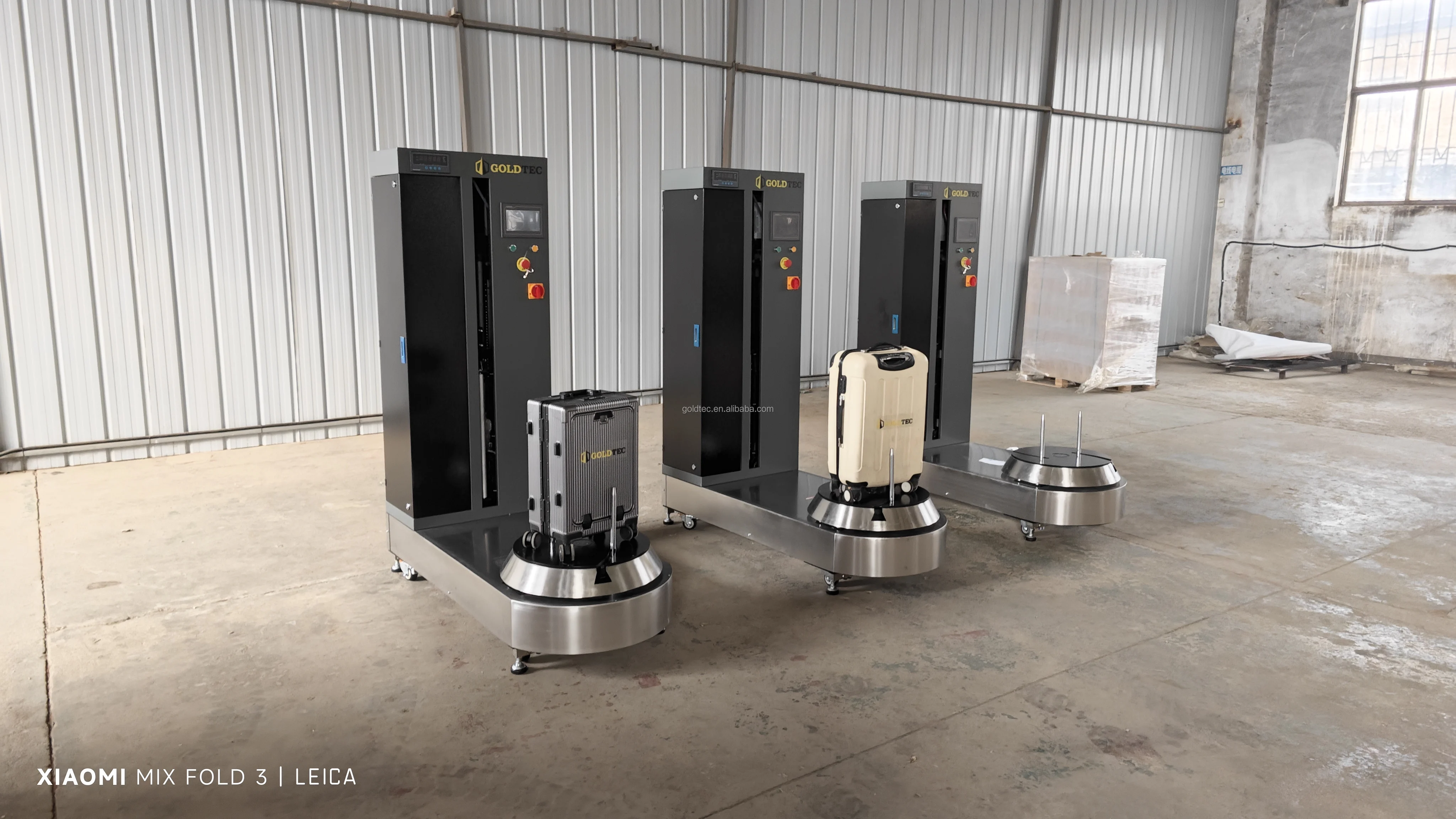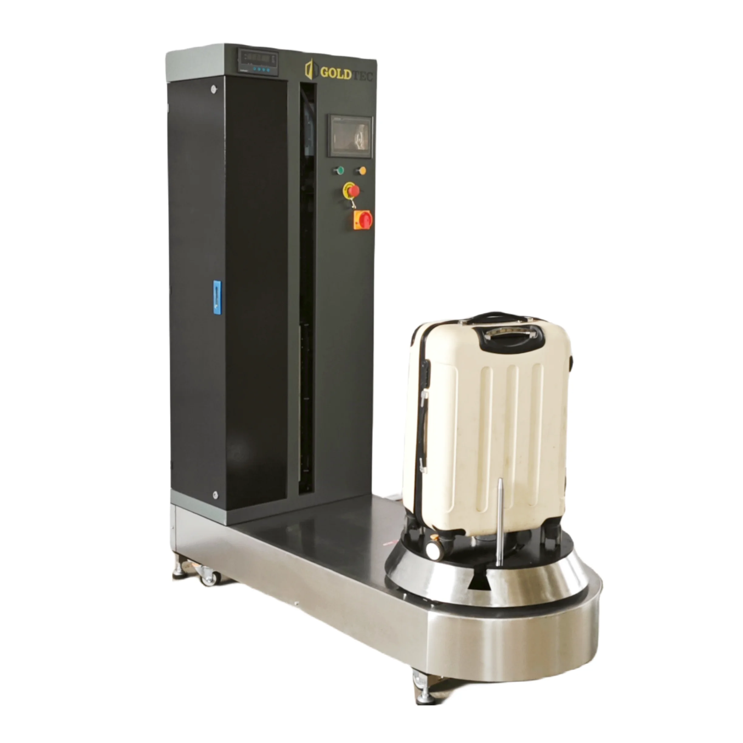 GT-1200L is an advanced luggage wrapping machine made by GOLDTEC. The film carriage of the machine can automatically up and down, which is convenient for products of various specifications. The machine has an advertising screen, which can automatically place advertisements. At the same time, the machine can also be equipped with weighing function.