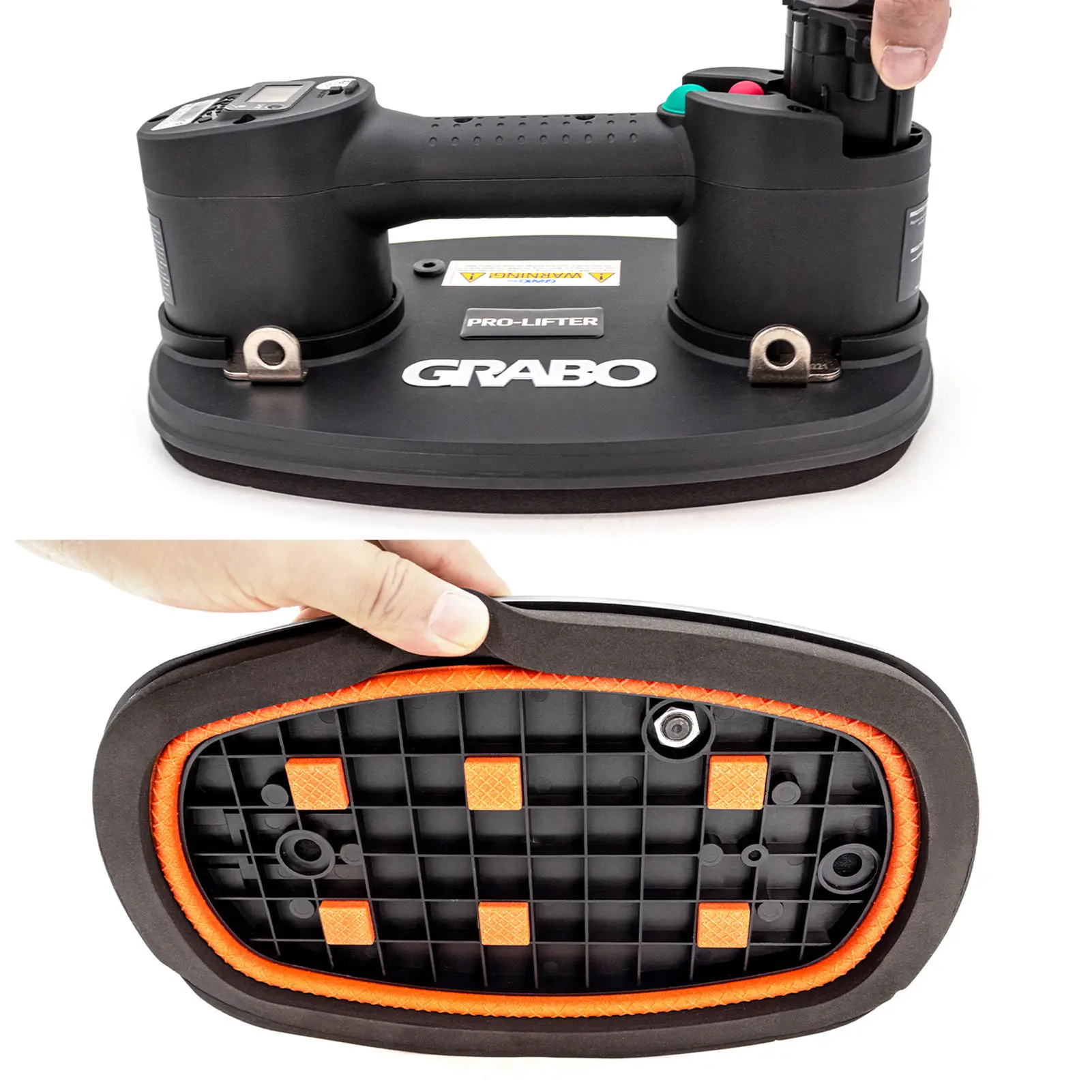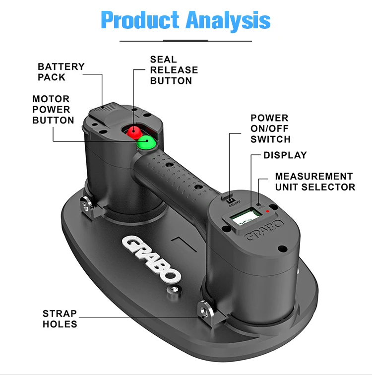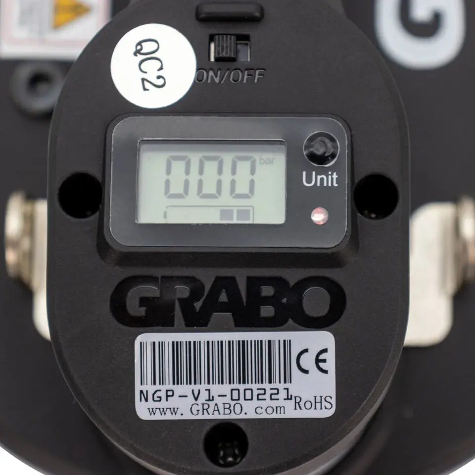 1.Equipped with a robust vacuum pump strong enough to hold firm even loads as heavy as 375 lbs, and a digital display that shows the maximum weight that the tool can safely lift at that very moment. The weight is displayed in both pounds and kgs.