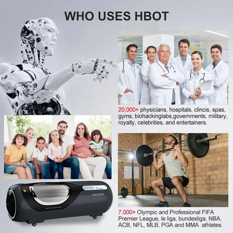 HBOT for sports in juries, beauty and relaxation High-inernsity exerise causes damage to some tissue of the body.HBOT reduce inflammaton during muscle damage by helping to remove free radicals ,improve imflammation ,contril edema,and ultimately pormote faster recovery hypoxia in time help the body complete normal oxidative metabolism,accelerate the removal of harful substances,and relieve fatigue caused by exercise.