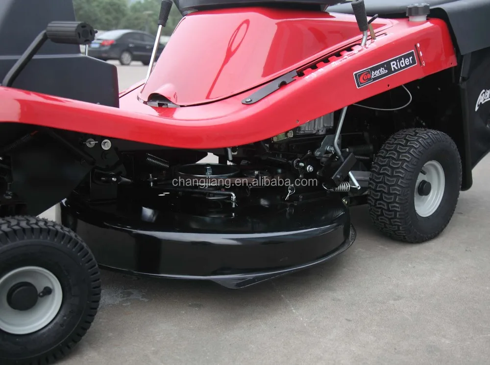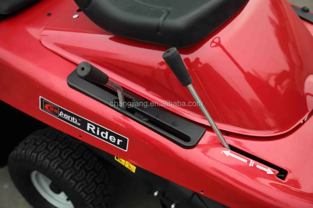 This compact CHANGJIANG riding mower, ride on lawn mower, tractor,equipped with a strong quiet Locin 15hp 432cc engine, offers you a lot of comfort. The position of the engine results in an unrestricted view and an easy step-through platform allowing more leg room and an easy access. The extremely tight turning radius helps you to cut smooth along the edges, thereby eliminating most trimming needs. Thanks to CHANGJIANG 's exclusive tool-less system you can level the cutting deck in a snap. The optional rear bag has a capacity to collect 176 liters of grass. On top, the side discharge rider can easily be converted to a mulcher.