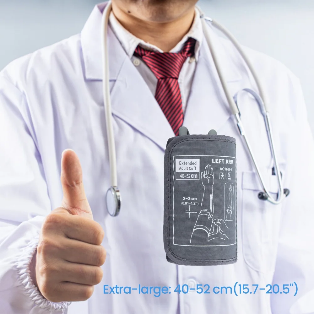 As there is a large increase of people who are overweight, validations of extra-large cuffs are becoming more important. In order to ensure that correct blood pressure values are obtained in these patients, Transtek has developed an extra-large cuff which has been validated for accurate blood pressure measurement in patients with large arm-circumference.